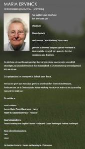Maria Ervinck huwde Omer Haelewyck, zoon van Camille Liévin (Camillus Livinus) Haelewyck en Elza Florizoone. Maria Ervinck werd geboren op zaterdag, 15 mei 1926 te Beveren. Zij overleed op zaterdag, 15 juli 2017 te Oostrozebeke in de ouderdom van 91.
