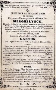 Familie | Ernest François Fidèle Clet Merghelynck °. 26 Apr 1813, +. 28 Aug 1869 |