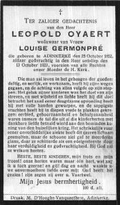 Familie | Leopold (Leopoldus) Franciscus Oyaert °. 25 Okt 1852, +. 13 Okt 1923 |