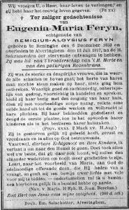 Familie | Eugenia Maria Feryn °. 6 Dec 1853, +. 13 Jul 1897 |