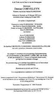 Familie | Denise Corveleyn °. 25 Feb 1932, +. 28 Maa 2001 |