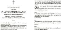 Paul Vandenbruwaene was Autogeleider. Hij werd geboren op donderdag, 16 juni 1932 te Poperinge. Hij overleed op zondag, 5 juni 2005 te Poperinge in de ouderdom van 72.