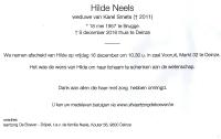 Hilde Neels werd geboren op zaterdag, 18 mei 1957 te Brugge. Zij huwde Karel Smets na 1991. Hilde Neels overleed op vrijdag, 9 december 2016 te Deinze in de ouderdom van 59.