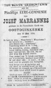Jozef Marrannes was Geneesheer. Hij werd geboren op zondag, 8 april 1923 te Oostduinkerke. Hij huwde Eliane Meganck op 8 september 1951 te Pervijze. Jozef Marrannes overleed in 2009.